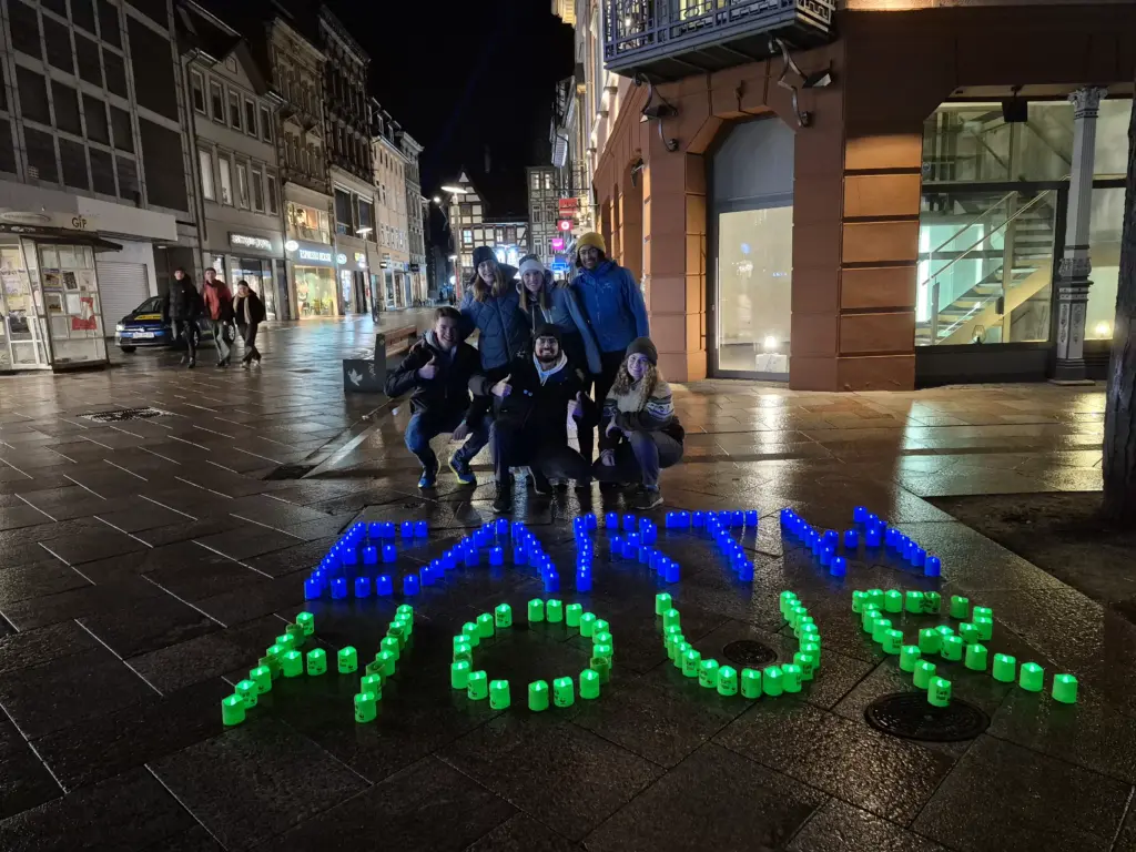 Die Earth Hour ist eine weltweite Umwelt- und Klimaschutzaktion, die jährlich vom WWF organisiert wird. Dabei schalten Menschen, Städte und Institutionen für eine Stunde das Licht aus, um ein Zeichen für mehr Klimaschutz und einen bewussteren Umgang mit Energie zu setzen. Wir waren dieses Jahr in Göttingen und Kiel dabei, um ein Zeichen für den Klimaschutz zu setzen!