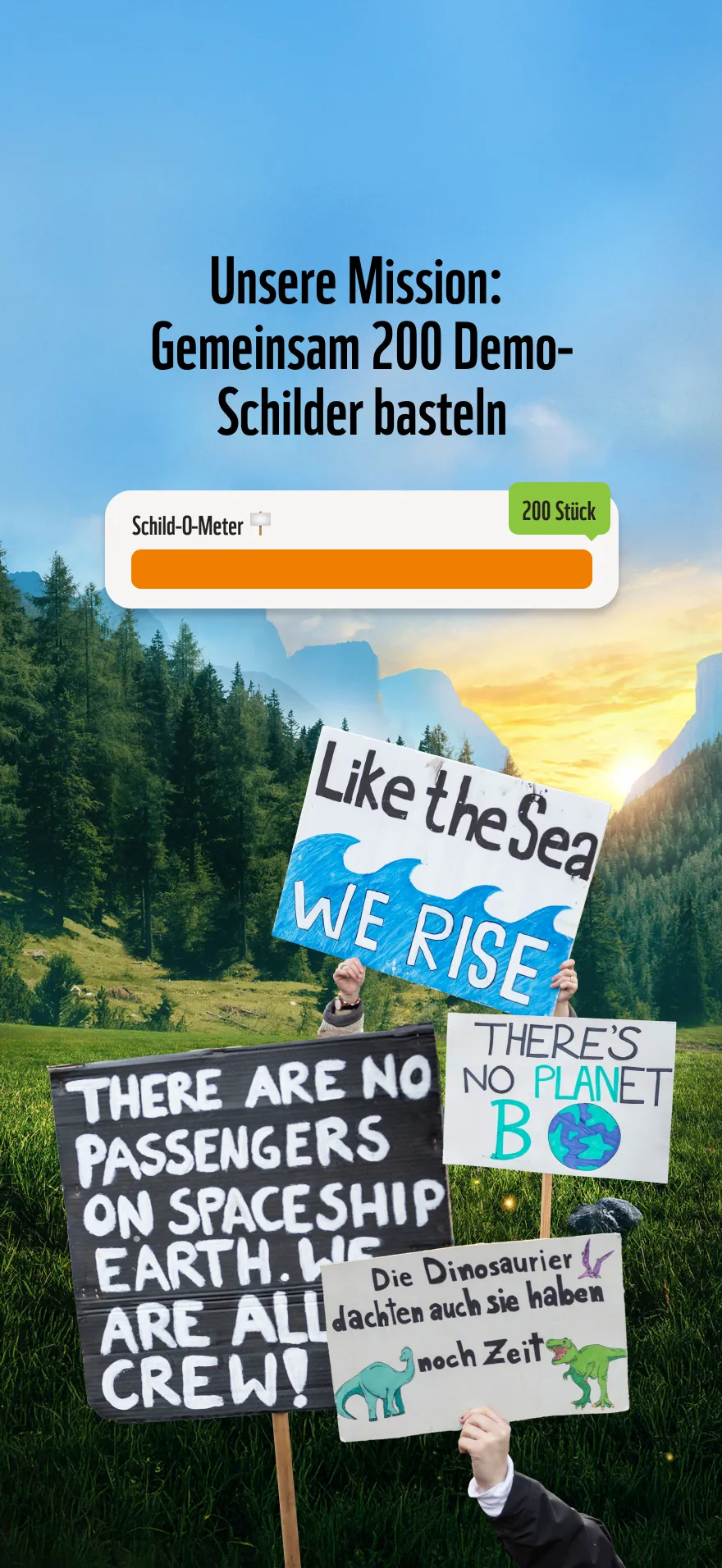 Gewinne Preise wie ein tolles Buchpaket oder signierte Filmplakate, indem du ein Demoschild gestaltest und Klima-Quests mit der App abschließt: